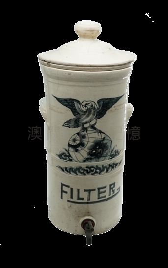 礼记雪糕标榜的雪糕、雪条均用熟水制造,滤水器的材质为陶瓷,表面光滑,画有雄鹰展翅,下方写有英文"FILTER"。过滤水时,水从上方的盖注入,过滤后沿下方滴水口出。