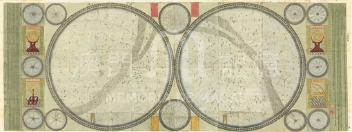 This item is currently known as the earliest and the largest Chinese star map, depicting the complete celestial sphere including South Pole area. As the most detailed star map at that time, it draws as many as 1812 stars, exceeding its western European counterparts. The map consists of two circular star maps with both Arctic and Antarctica as the centers, separated by the line of equator. Meanwhile, other fourteen small stars maps and four astronomical instruments are drawn on the margins of the map. The outer of the map has 360 degree, while the inner part as 365.25 degree, the same way of the former map of 'Jian Jie Zong Xing Tu' (General Map of the Visible Stars, 1631). As a combination of both eastern and western planisphere, the ancient Chinese map learns the zodiac from the western cosmography, using a line starting from the celestial pole and circling around the planisphere. Meanwhile, the Chinese methods are adopted as separating the sky as twenty-eight mansions ( 二十八宿), with the line starting from the equator to the edge. The map is named after Chinese traditional constellation, with the sequence of number named after, such as the star of 'Dou Xiu I'. It seemed that ancient China had never drawn Antarctica stars, hence this star map proved to learn western methods of cartography and the translating name, and used them thenceforth.