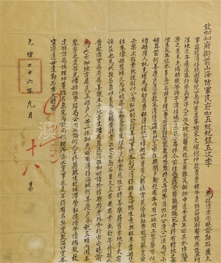 光绪二十六年九月十八日(1900年11月9日),钦加知府衔前山海防军民府加五级纪录五次李特示。