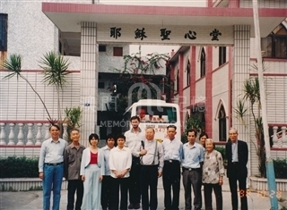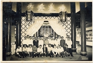 1961年10月29日,為慶祝鏡湖醫院成立九十周年而舉行為期一連八天的展覽會,10月28日,美工人員在會場內合照留影。 前排左二起:羅榮、鄭能、余國標、吳仕明、陳振華、鄭國雄、呂培、張兆全、黃德鴻; 中排左起:關啟祥、吳樹倫、梁惠民、關萬里、吳培理、錢龍、盧錦、陳新、郭頃; 後排左起:陳耀培、呂深、陸昌、黃煜棠、姚思明、李沾銳、張耀生。