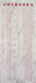 一、 西洋公物會所發本醫院地紙照稿刻列西曆1871年10月28日在澳門公物所有華人沈旺、曹有、德豐、王六等四人,是華人鏡湖醫院公舉前來稱1870年6月21日公物會大憲,當堂准許建華人醫院在三巴門外,該地租銀壹大圓,此係做醫院日後該地另做別樣則另議加租,公物會大憲吩咐立明地界,將該地交與鏡湖公司管理。同治辛未拾年九月吉日立二、 善信送義地癸酉年(1873年)崔凌雲送義地一段土名較場埔癸酉年(1873年)義安堂送義地一段土名較場埔與前地左右相連丁丑年(1877年)宋卓卿等三十一位仝送義地一段土名荷葉埔壬午年(1882年)置義地一段土名老鼠坑癸未年(1883年)林靄卿送義地一段土名白石坑口蘭埔三、 送義地序為施捨湯藥,濟貧病使其長壽,不治而死亡者,須殮葬,前同事致送義地安葬幽魂,敬送善地三段,今未雨綢繆,現再送山地土名荷葉埔,縱橫十九畝,為醫院西歸義塚。此碑刻上幾個年份,善長送義地,最遲是癸未年(1883年)立此碑時間,應該是建院後十二年。