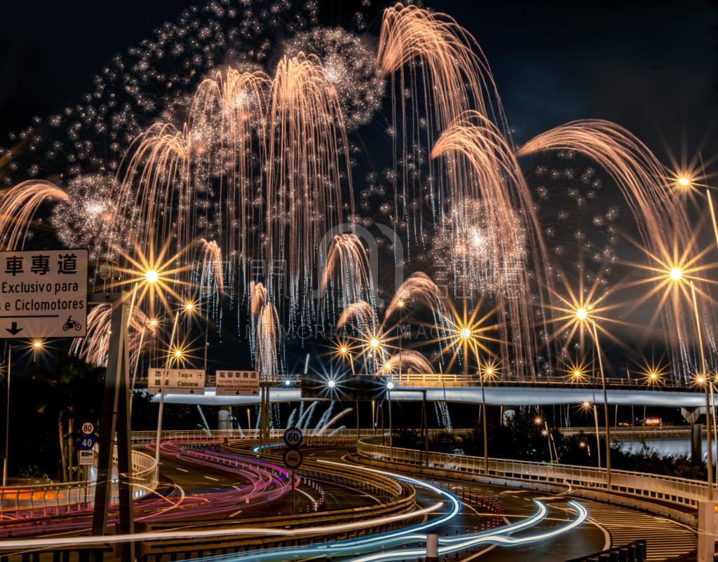 澳門2025煙花匯演菲利賓場次,金色煙花如星雨般從夜空傾瀉而下,將城市夜景的繁華與煙花綻放完美融合。