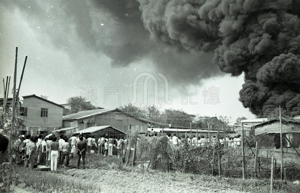 輪軚場火警發生,濃煙密佈冲天,居民紛紛走到屋外圍觀及等待消防人員救援。