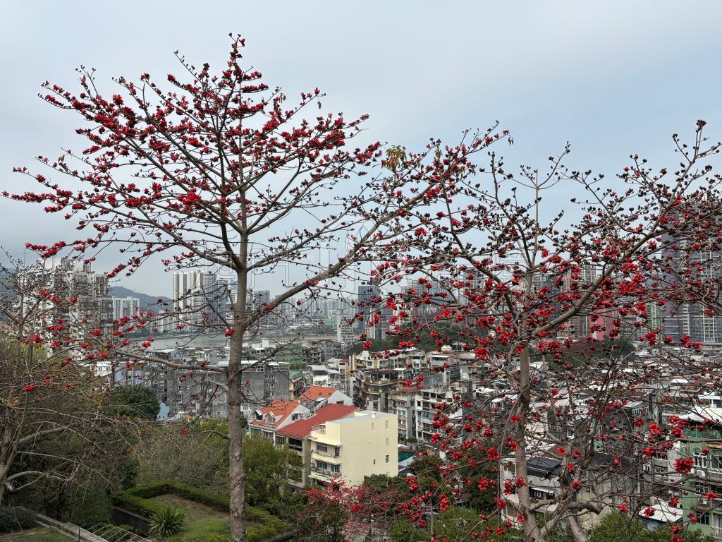 在大炮台花園,可以鳥瞰澳門的風景,在春季也可以看到幾顆粗壯的木棉花盛開的美景。