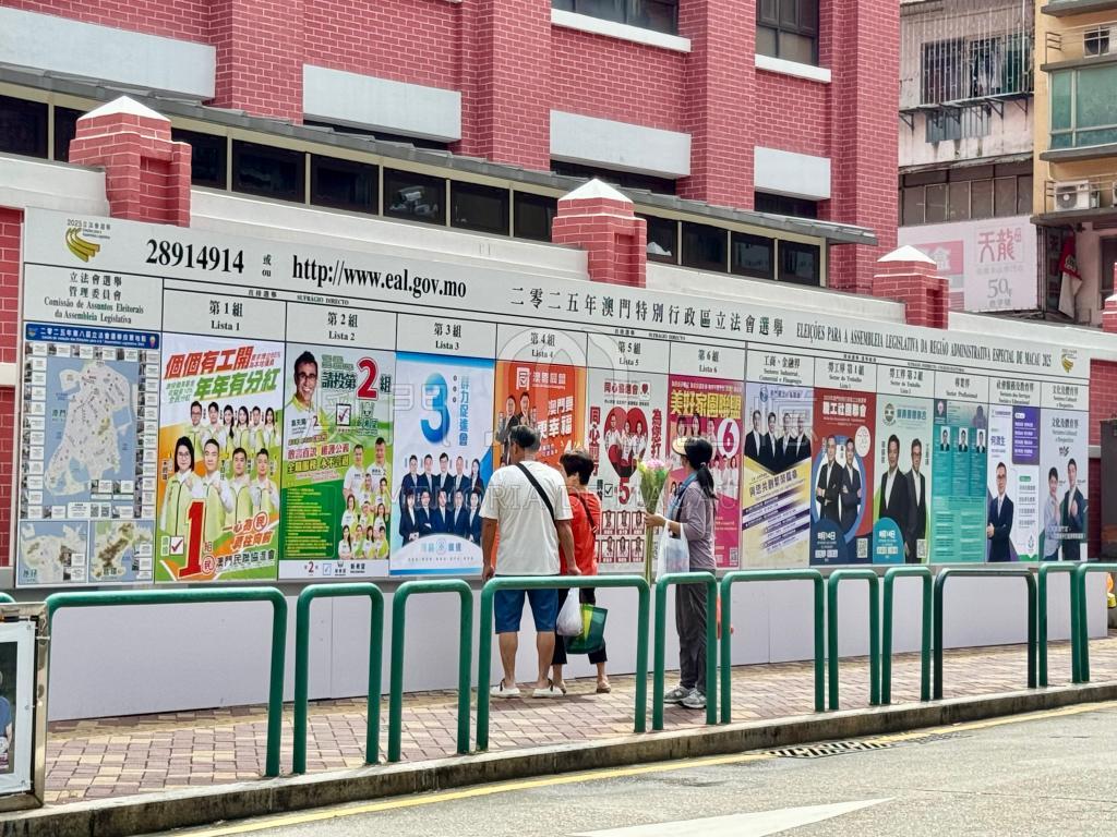 第八屆立法會選舉期間,市民經過紅街市,在宣傳海報前駐軍了解各組政網。