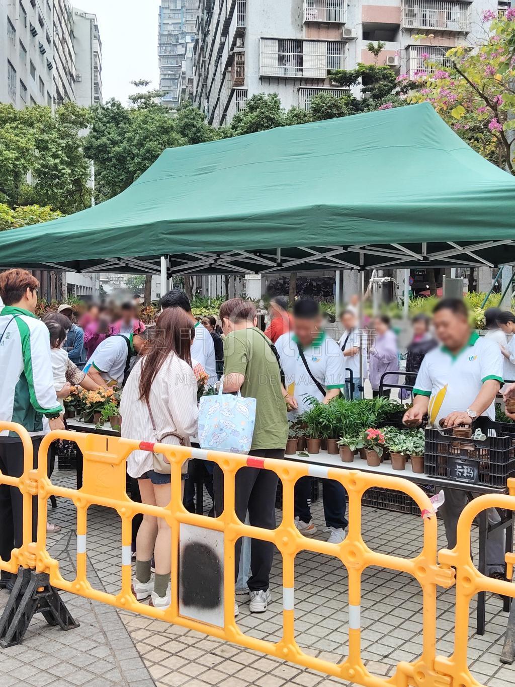 市民排隊領取小盆栽