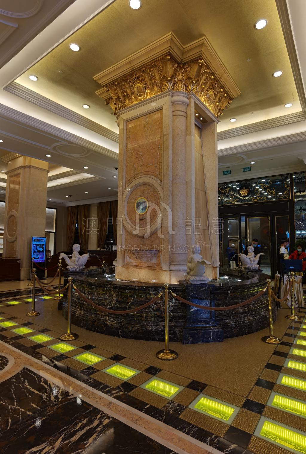 澳門英皇娛樂酒店大堂的金條是其一大特色。酒店大堂中央建有「黃金大道」,由78塊總重量達78公斤的瑞士999.9千足純金鋪砌而成,每塊金磚鑄有獨立編號。這些金磚在燈光照射下流光溢彩,成為澳門博彩業奢華符號的代名詞,現約值8千萬元。而在中央的白龍王的祈福池,相傳此地為風水寶地,供人們前來祈福許願,亦很引人入勝。
