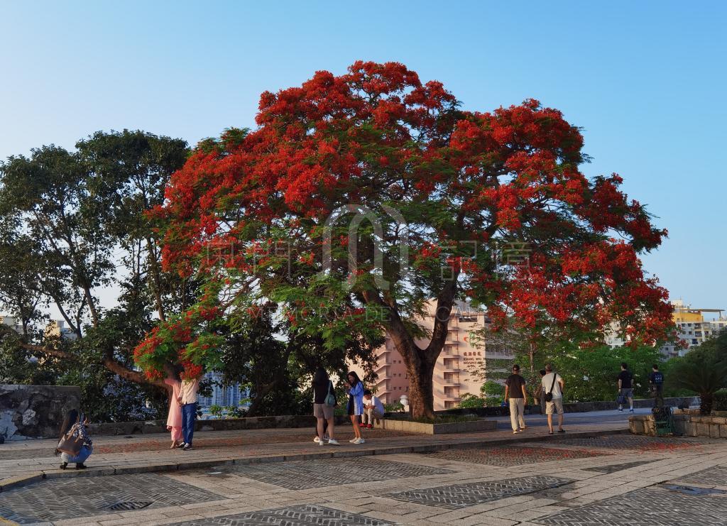 在大炮台花園,可以看到繁花盛放的鳳凰木,這種樹開花的時間,通常也會在學校的畢業季節前後。