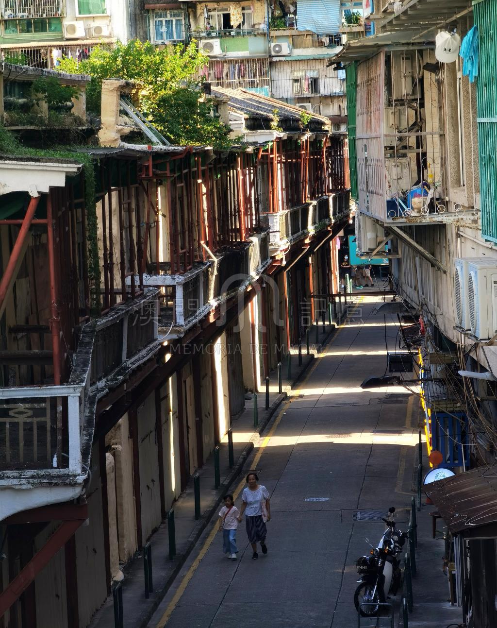 位於下環街的沙井天巷和光復圍,一排排的空置屋宇等待復活,陽光透過建築間隙灑落在小巷中,置身其中的路人仿佛走過時光隧道。