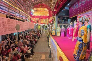 238米長的大金龍由大三巴牌坊出發,途經東方斜巷、崗頂、龍嵩街、擺華巷、政府總部、卑第巷、聖老楞佐教堂、亞婆井前地、媽閣街,最後抵達媽閣廟。