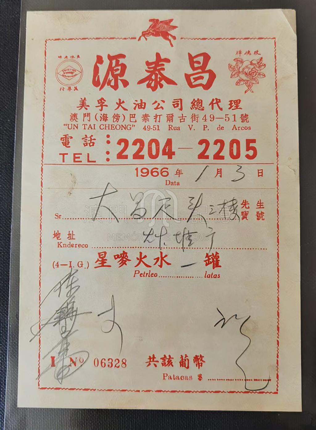 購買商品是星嘜火水 一罐(「星嘜」是美孚火油的子品牌,「火水」即煤油,用於照明、煮食)。飛馬商標:頂部紅色飛馬是美孚(Mobil)的經典標誌,代表品牌的動力與速度感。玫瑰牌:美孚旗下的火油品牌,是當年港澳家庭常用的照明燃料品牌。美孚行:美孚體系的品牌標識。