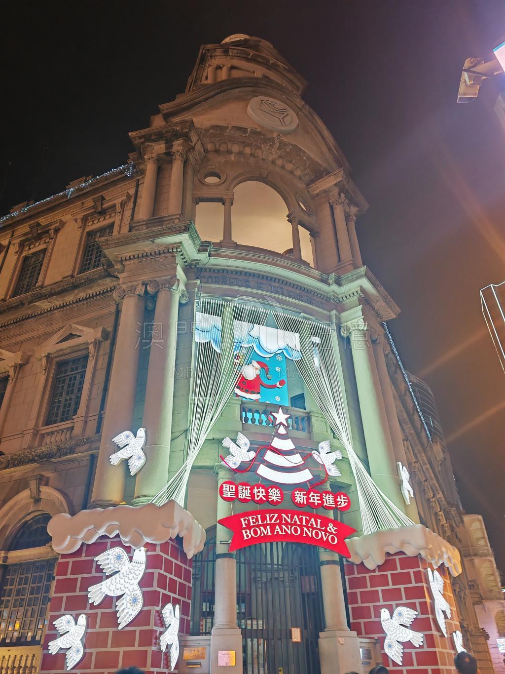 澳門郵電局前添上聖誕節裝飾,節日氣氛更為濃厚。