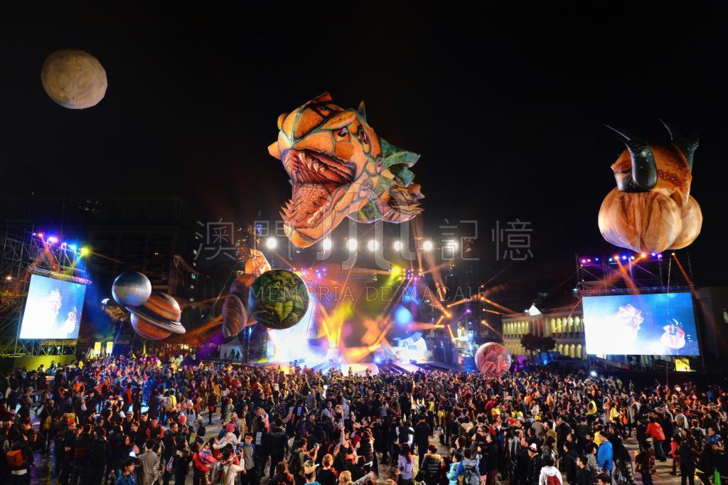 2014澳門拉丁城區幻彩大巡遊,在終點處設置大型舞台及巨型氣球,場面熱鬧。