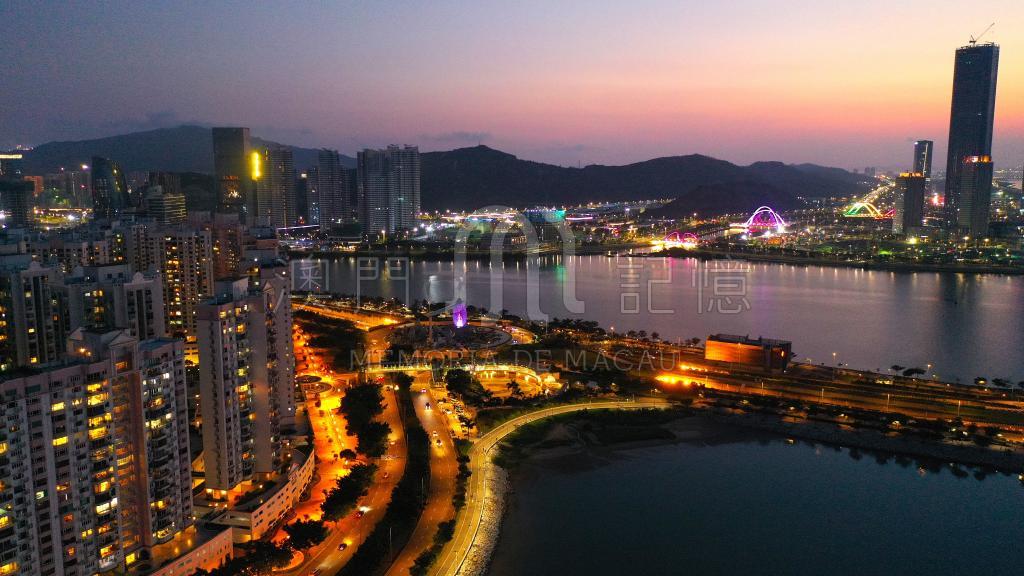 從高鳥瞰西灣湖畔,特別在晚間,與十字門河道景色相輝煌。
