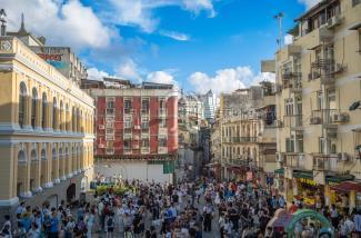 站在大炮台遠眺中區的新葡京、中銀及觀光塔;感受到澳門小城變幻;由小漁村到大都會時日如飛。