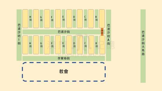 1931年落成時巴波沙坊的規模共有十六座平房,每座平房有三十個單位,合計有480個單位。巴波沙坊的主幹街道是巴波沙街【20】,而橫街以英文字來命名,從入口的巴波沙坊A街至海邊的I街【21】,而作為巴波沙坊正入口的A街與巴波沙街的交界建造牌坊。
