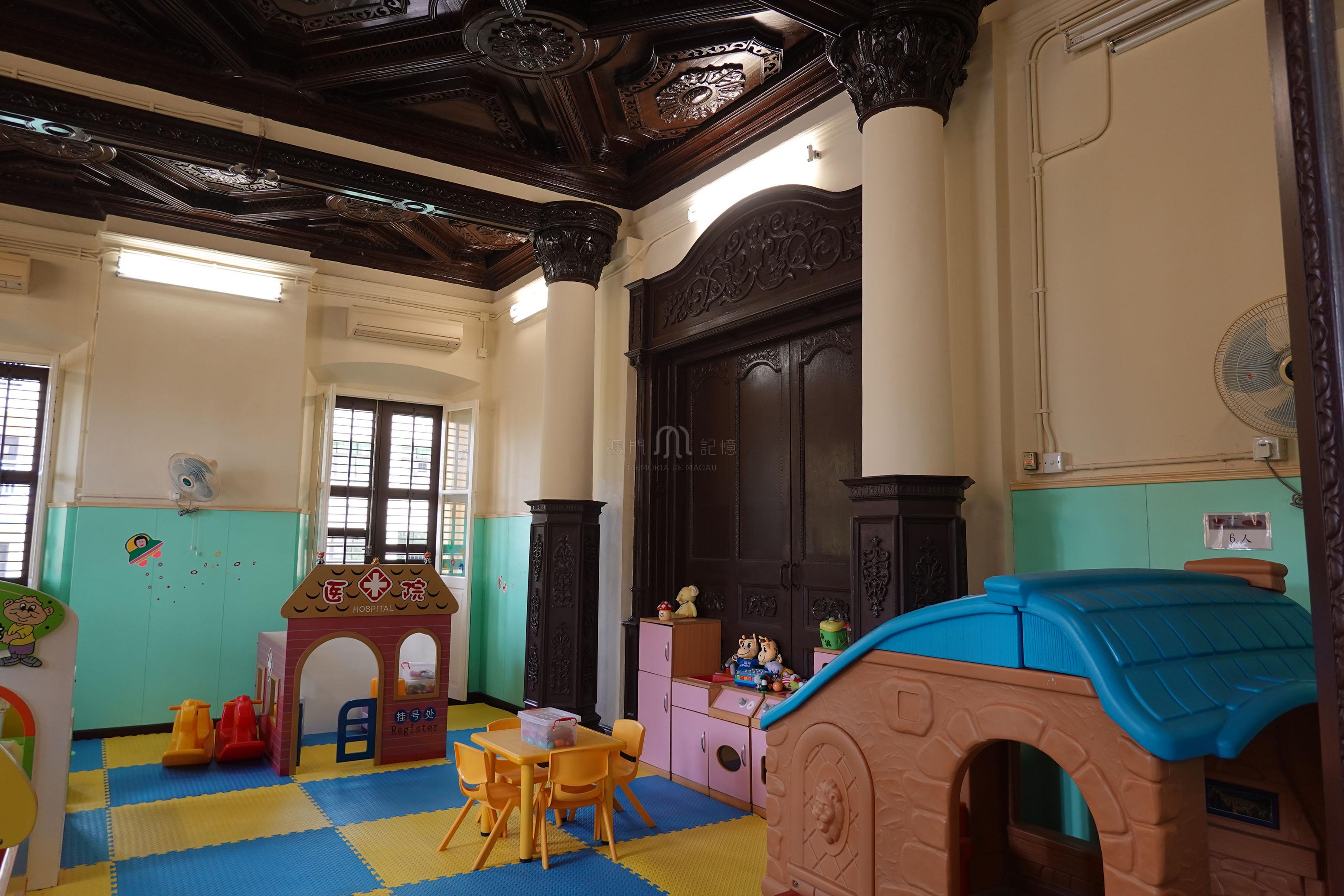 從未改建前的照片可知,大樓內部裝潢以古典折衷的西式設計為主,包括古典柱與卷拱,而木假天花上,卻飾有中式的花紋。中西合璧是20世紀初澳門上流社會追求的生活品味。