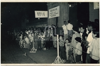 1961年10月29日,為慶祝鏡湖醫院成立九十周年而舉行為期一連八天的展覽會,晚上展覽會場外,大批市民輪候入場參觀。