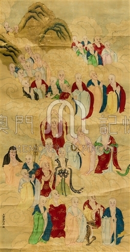 水陸法會之內壇畫;畫中題字:“上堂第四席左”。