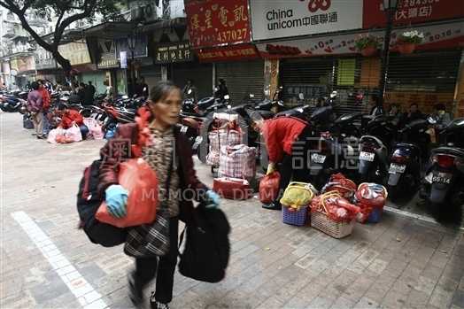 大量的水客對出入境造成壓力,影響往返旅客,自2011年開始,珠澳兩地嚴厲打擊水客活動,水客進入艱難時期。圖中為關閘馬路的水客運送水貨的場景。
