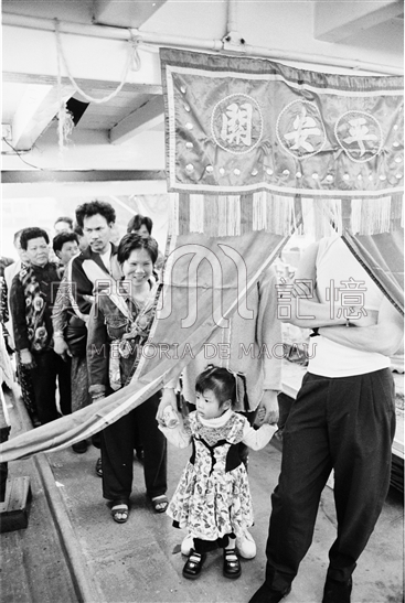 漁民出海作業、以船為家,信眾希望透過“過關”儀式保平安。掛於“神棚”旁邊的紅色門布上繡有“平安關”,象徵此為平安境地。“過關”儀式開始時,居士唸出各種“關口”的名稱諸如“哭啼關”、“血盤關”、“短命關”及“鬼門關”等,並代漁民向神明請求協助度過此等“關口”。在居士重複唸讀各“關口”名稱的同時,漁民排成一隊,輪流穿過門布。負責儀式的居士會向每位“過關”的漁民灑水淨潔。