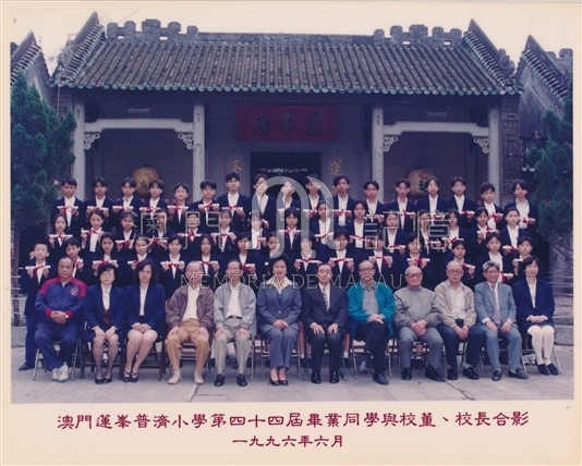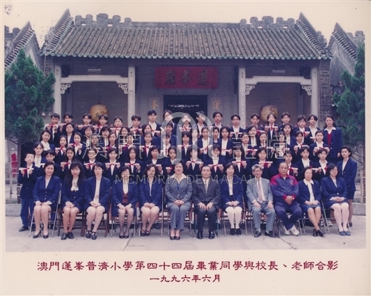 圖為澳門蓮峰普濟小學第四十四屆畢業同學與校長、老師合影。