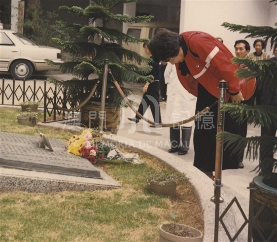 1986年11月5日,孙中山先生孙女孙穗瑛、孙穗芳、孙穗华及孙琼芝、孙婿林达文、姻亲陈志昆等多人,来镜湖慈善会访问,并向孙中山先生铜像献花,图为孙穗华女士。