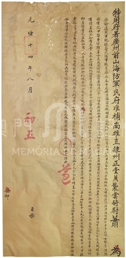 | 權限範圍: | 澳門鏡湖醫院慈善會授權澳門基金會使用。如需使用有關資料,需徵得有關版權實體的同意。 |