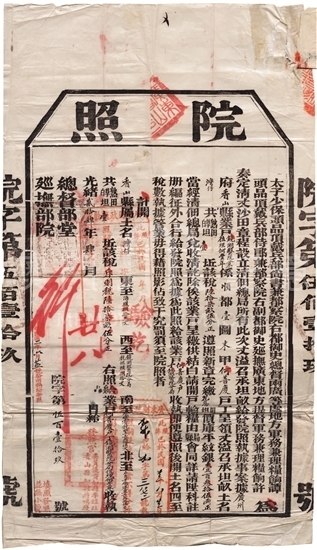 光緒二十四年四月二十八日(1898年6月16日),總督部堂巡撫部院,院照發給鏡湖分局值理何豐年,灣仔熟田、草白坦共壹坵,陸拾柒畝伍分正。(院字第伍百壹拾玖號,加蓋民國廣東財政廳驗訖章。)
