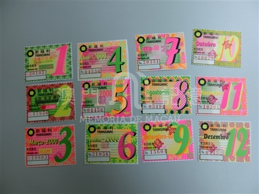 當年適逢澳門回歸,新福利特別推出豐富色彩的印花,個別月份亦罕有地採用了中國數字。持證人只需要到票站購買該月票印花,貼在巴士證上,便可於印花指定月份內不限次數乘搭新福利巴士。圖為各個月份的印花貼紙樣本。
