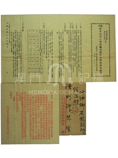 信函申明倘有台山培英學生遷澳可報讀私立廣州培英中學西關分校暨小學部(澳門)。