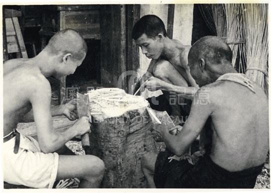 赤膊工人在聚精會神工作。