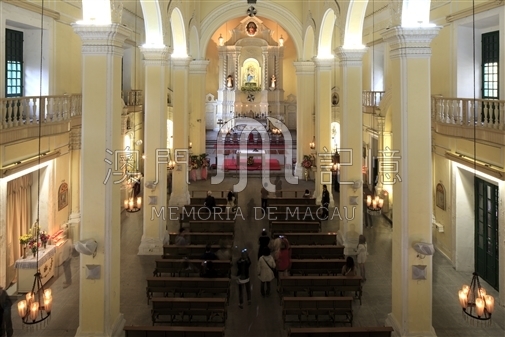 具有四百多年歷史的玫瑰堂,經過三年大修後,於一九九七年十一月間重開,教堂內外煥然一新。其左側的一幢四層高鐘樓,由有關當局耗資六十萬元修葺,闢為“聖物寶庫”,陳列宗教藝術品,與敎堂同時開放,讓公眾參觀。“聖物寶庫”保留原來鐘樓的木質結構,與教堂建築風格協調。入口是一道長廊,圓拱窗框,安裝鐵欄,頗具歐陸修院色彩;除地下大廳及四樓鐘樓外,二、三樓為陳列室,充滿濃厚宗教氣氛。寶庫內珍藏二百多件宗教文物,種類繁多,材料有金、銀、銅、木及象牙等,製作精巧;聖像也有木雕和石膏製品,形態逼真,其中一具彩色木雕耶穌,像人一般高度,四肢軀體,肌理畢現,栩栩如生;油畫作品,均具歷史性;也有中國絲綢縫製的祭衣,工精料美。這些展品,除了該堂的藏品外,還有來自其他教堂及社會人士捐贈的。遺憾的是二零零零年七月間遇盜,失去價值不菲的念珠四串,其中一串是十九世紀以金絲編織而成的玫瑰聖母念珠,餘三串為二十世紀產品。在二樓特闢一室,以圖片、繪畫及文字介紹玫瑰堂最近一次耗資一千一百萬元大修過程,從中了解這座教堂的歷史和建築結構。敎堂雖在“聖物寶庫”外,但本身也是一件巨大的“展品”。頂樓擺設兩座大鐘,分別是一八零七年和一八二五年鑄造。“聖物寶庫”藏品比“大三巴宗教博物館”豐富,透過這些文物展品,可以了解天主敎在澳門發展的歷史。