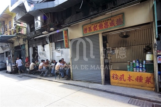 《永不回來的風景-澳門昔日生活照片》影集中有一輯《小販生涯》,記錄了七八十年前各行業小販生活實況,活現眼前,讓讀者認識往昔小販謀生情況。其實,小販行業由來已久,到今天仍然存在着,起着推動經濟發展的作用,在社會上扮演一個重要的角色。小販出售的貨品,有吃的和用的,品種繁多,都與居民日常生活息息相關,如老照片出現的賣掃帚、蔗、草藥,租賃連環圖書,補衫,剷刀磨鉸剪……隨着社會發展,環境變遷和人們需求,到了今天,不少街邊小販行業被淘汰了,但又以新的形式出現,售賣時興貨品,與往昔有所不同,反映了本澳社會經濟和居民生活變化的一個側面。人們為了謀生,又找不到工作,或是欠缺大本錢,於是就當小販,做點小買賣,本小利薄,維持生活。按小販買賣形式可分流動攤檔和固定攤檔,多是露天經營的,生意常受天氣影響。固定攤檔是在街邊某地點設置檔口擺賣,不會變動,方便顧客光顧。流通攤檔則是小販用擔挑籮筐或手推車,載着貨品,穿街過巷,到處呼賣;人們在家裡聽到呼賣聲,而又是自己所需的物品,就會從家裡跑出來光顧。呼賣聲是“市聲”的一種,別有情調。六七十年前,有小販托着一紮長竹竿,沿街兜售,邊行邊叫:“衣裳竹”;也有布販肩托多卷紗綢,在街上高呼:“靚紗綢”,藉以吸引顧客,他們的呼賣聲各有節奏,在寂靜的小巷長街響起,特別響亮,別有韻味。這種“市聲”今已成絕響。