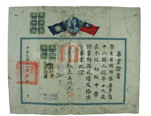 畢業證書獲教育部認證,其中貼有官方印花並蓋上鑒證章以示其公信度。
