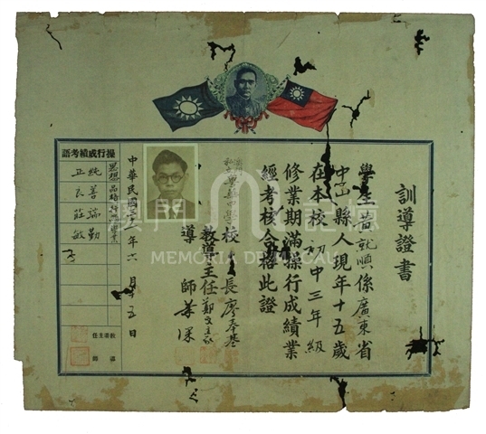 除了畢業證書外,抗戰期間澳門一些學校同時兼發訓導證書。