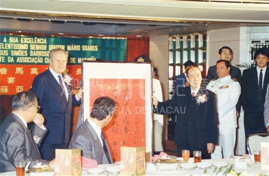 1990年11月16日,馬萬祺會長宴請葡國總統蘇亞雷斯表示歡迎,並贈其親筆題詩。