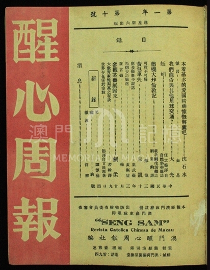 該份周報由天主教醒心周報社編,由望德堂嚴紹漁司鐸監督編印。其中收入了一些有關澳門天主教教育的文章。