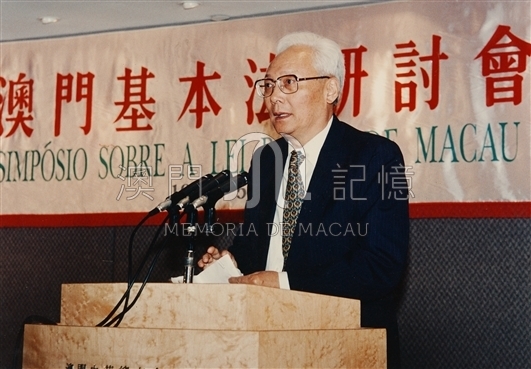 1993年,國務院港澳辦主任魯平在澳門基本法研討會上講話。