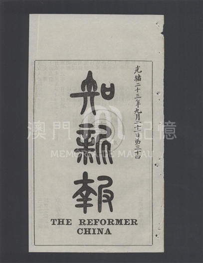 《知新报》是澳门第二份中文报纸,翻译不少西文报刊,录英、俄、德、法、美、日等各国大事,同时远销海外旧金山、悉尼、安南、新加坡等地。设社址于澳门南湾大井头四号,其后在1900年11月22日(清光绪二十六年十月初一)出版的第129期有迁馆告白:从大井头四号移寓至门牌十九号。