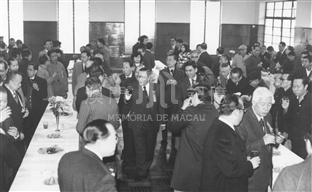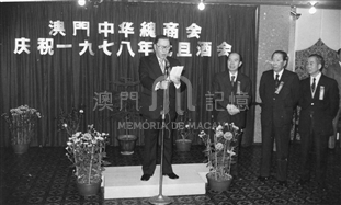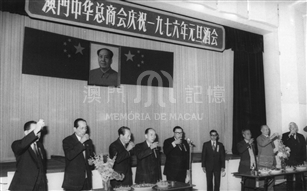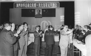 中華總商會在1975年元旦舉行酒會,何賢、鄭鞏、何鴻燊、陶開裕、柯正平等向來賓們共祝新年快樂。