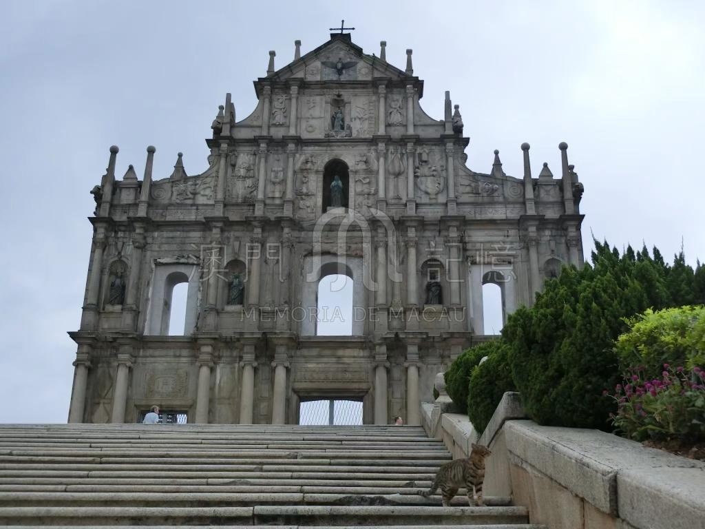 大三巴是澳門的景點和地標,也是最受遊客歡迎的地方,在疫情期間大三巴也顯得平靜,貓兒懶洋洋在大三巴石級休息。