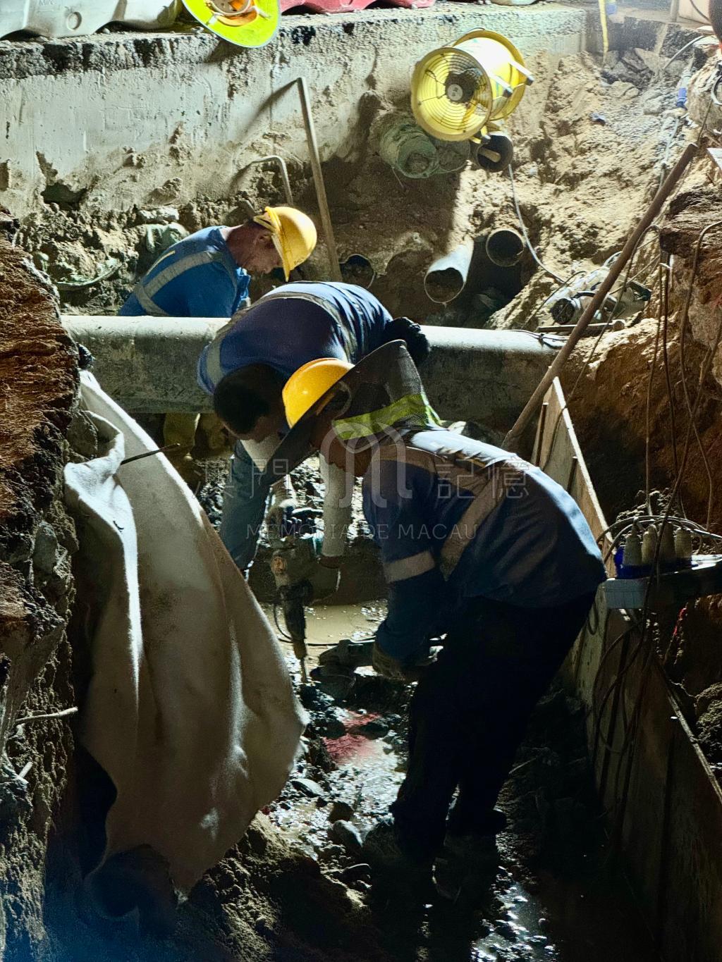 工人們連夜趕工,以減少管道鋪設工程對民生、營商及交通方面所帶來的負面影響。