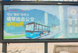 在疊石塘山崸的媽祖像向外觀望,石排灣居住群,金光大道,橫琴等地的建築物的燈光與日落的餘暉爭艷斗麗。