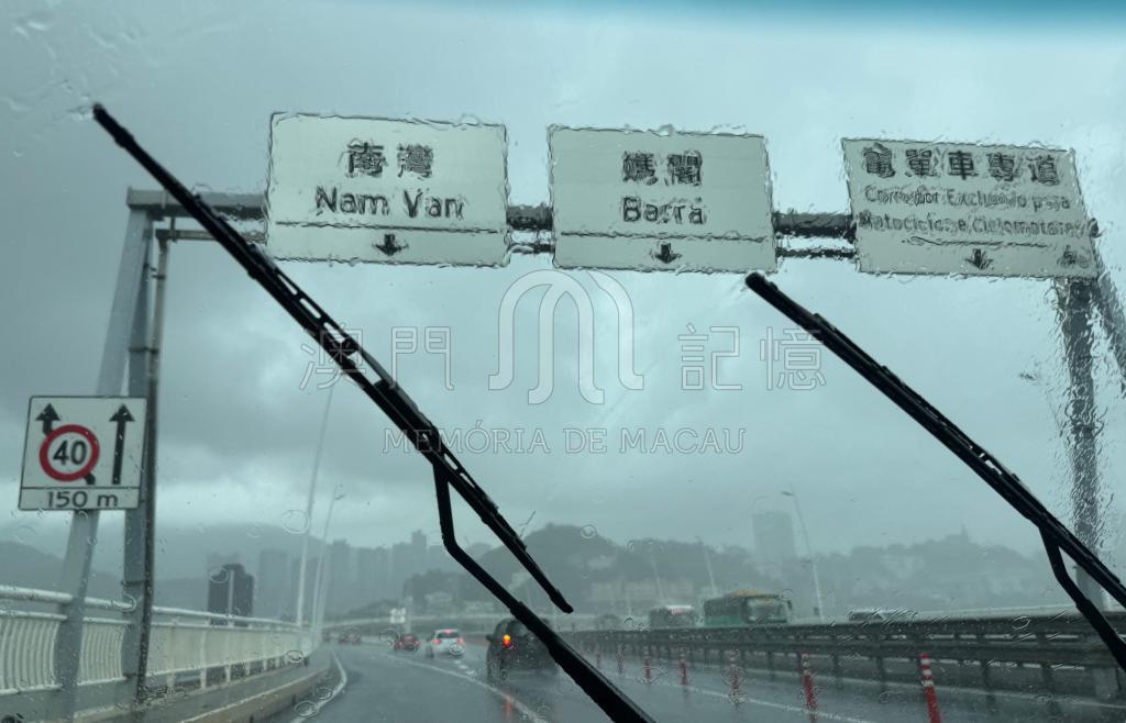 照片拍攝於西灣大橋往澳門方向,很少人喜歡拍下雨天的照片,雨天下對路牌的影像有點模糊,也有點深刻,就像對舊澳門的舊記憶一樣。