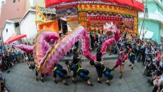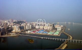 從十六甫索菲特酒店天台拍攝的新馬路夜景,遠處的新葡京酒店與舊城區燈色相輝影