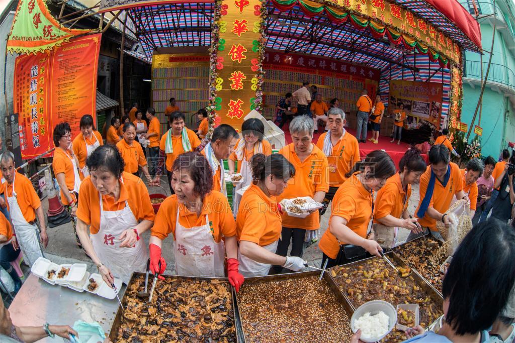 澳門傳統佛誕舉行鮮魚行醉龍表演活動,期間派發寓意平安之龍船頭飯