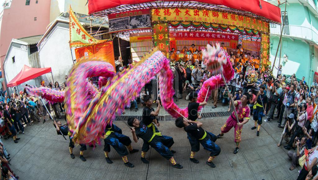 澳門佛誕節, 漁行在營地街市前地舞龍表演