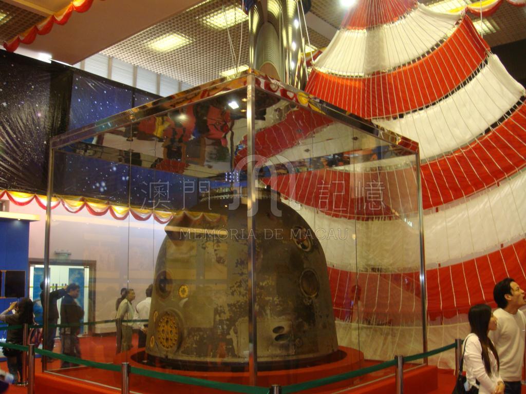 中國載人太空船「神舟七號」順利升空及返回,實踐了中國人首次在太空留下足跡的壯舉,見證我國舉世矚目的偉大成就。為了慶祝是次航天任務的圓滿成功,澳門特區政府於2008年12月19日至23日在綜藝館大堂舉行《遨遊宇宙-中國首次太空漫步航天展》,展品分為實物、模型及照片。實物包括神舟七號返回艙、降落傘、艙內及艙外航天服、航天食品、太空船搭載的植物種子等,並有神舟七號模型及一百二十張記綠是次壯舉的珍貴圖片,加深市民對神舟七號以及中國載人航天科技發展的認識。