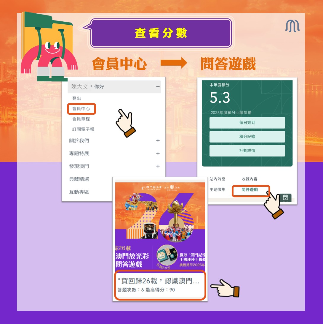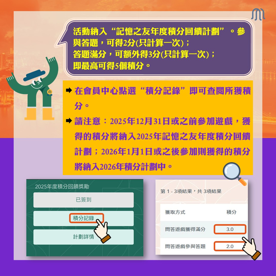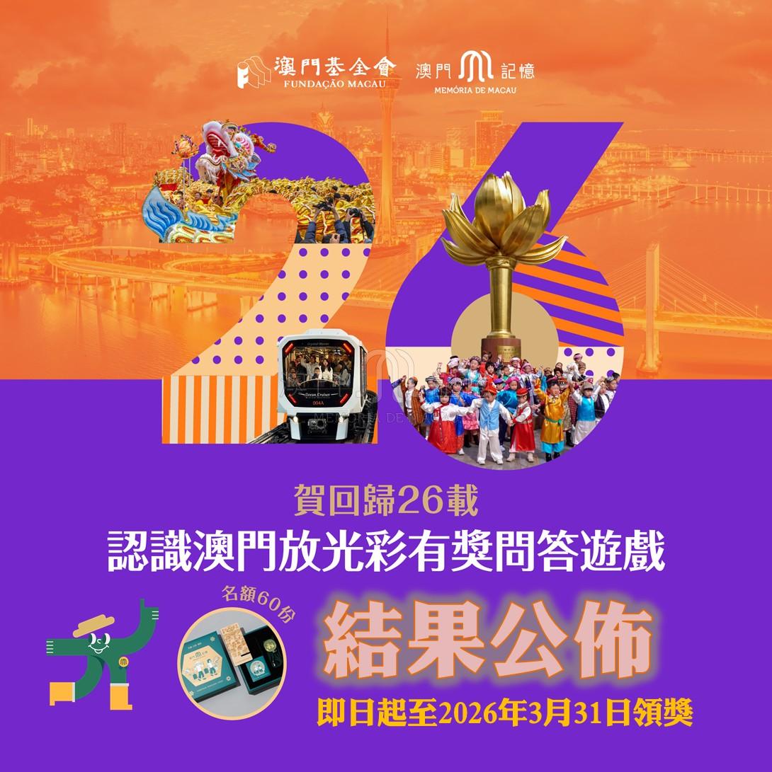 感謝會員們的支持和參與!有獎問答遊戲的得獎結果出爐,每位得獎者可獲“澳門記憶”手機座連手機掛繩套裝 1份 。